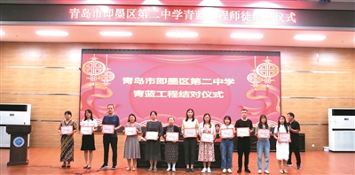 加大青年教师培养力度,推进“青蓝工程”,通过师徒听评课、教研组培训、青年教师分年级赛课等形式,提升青年教师专业素养,促进青年教师快速成长。即墨区实验高中青年教师孙含笑在师父江崇臣的引领下迅速成长,工作三年来连续被评为“优秀新岗教师”,所带班级学风浓厚、凝聚力强、成绩优异,获评“青岛市优秀班集体”。