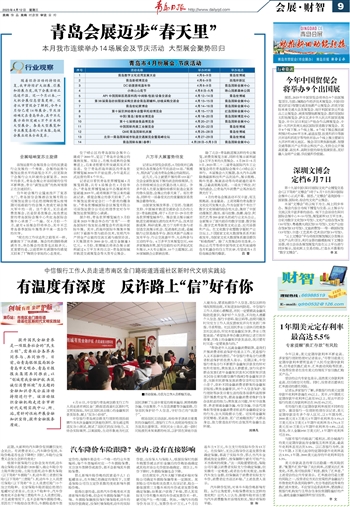 记者从市贸促会获悉,4月份我市已确定举办各类展会和节庆活动14场。“规模大、频次高”正成为青岛会展业的高频词。