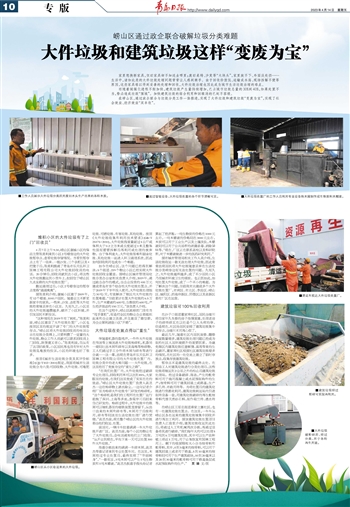 在崂山区,通过政企联合与垃圾分类工作一体推进,实现了大件垃圾和建筑垃圾“变废为宝”,实现了社会效益、经济效益“双丰收”。