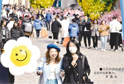 ■市民和游客感受老街里的新魅力。 于 滈 摄