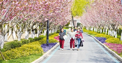 ■眼下,太平山绿道两侧的双樱盛开,赏花期可以持续到“五一”假期前后。 于 滈 摄