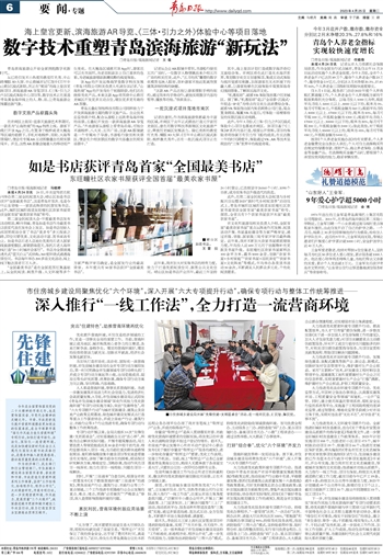 从已经引发不小热度的教堂灯光秀、中山路裸眼3D大屏、中山路城市记忆馆中《百年中山路》沉浸式影院,到正在“候场”的海上皇宫更新项目、滨海旅游AR导览项目、《三体·引力之外》沉浸式体验中心项目等,数字技术正在重造青岛黄金海岸线上的人、物、场,让青岛旅游业展露出新气象。
