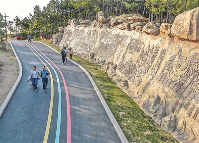 ■徐山文化公园进山步道两侧有精美历史壁画。 赵健鹏 摄