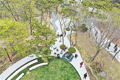 在双山公园,绿树掩映,彩虹廊架蜿蜒,游人或游览或休憩;在北岭山公园,繁花绿树相映,彩色道面铺展,市民或晨练或漫步;在上臧山公园,园路逶迤而行,两侧景致旖旎,宛如人在画中游……芳菲春日,一座座山头公园正盎然生长、奏响“春之曲”,让整座城市都愈加葱郁、灵动。