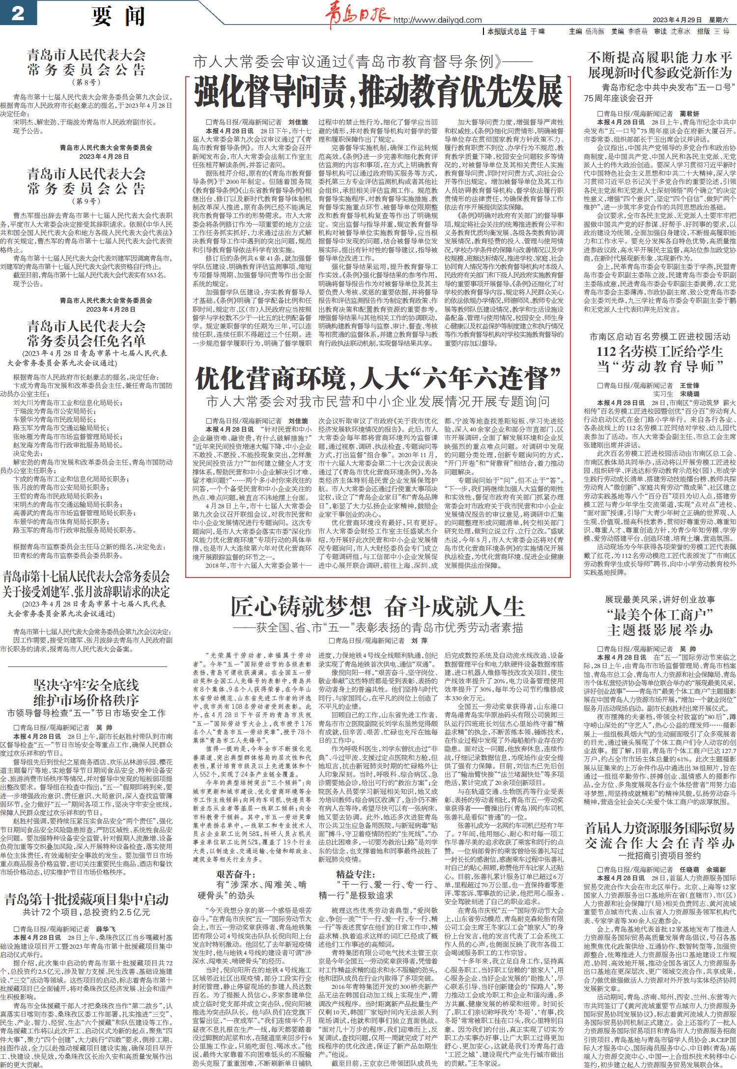青岛市人民代表大会常务委员会任免名单