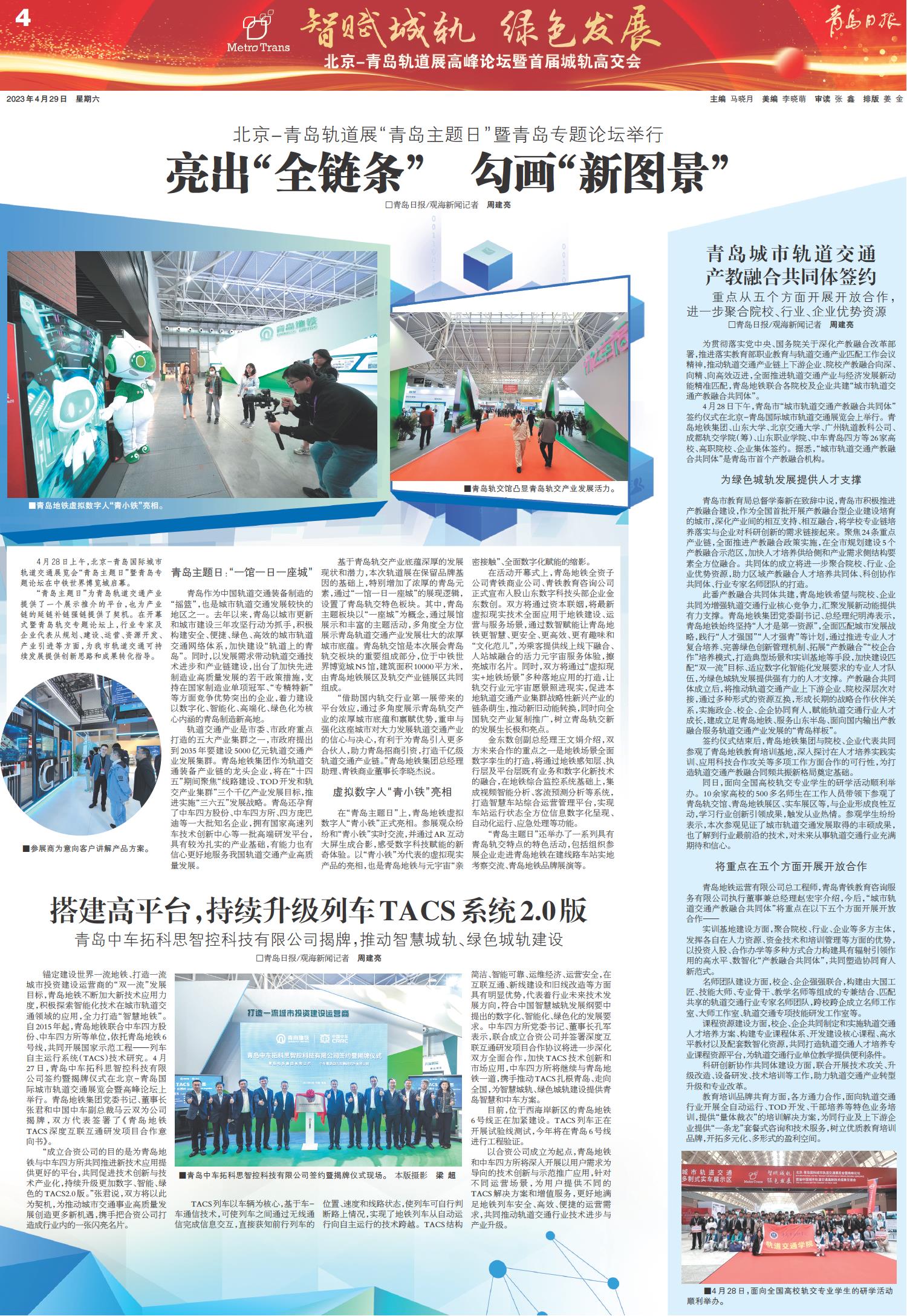 青岛城市轨道交通产教融合共同体签约