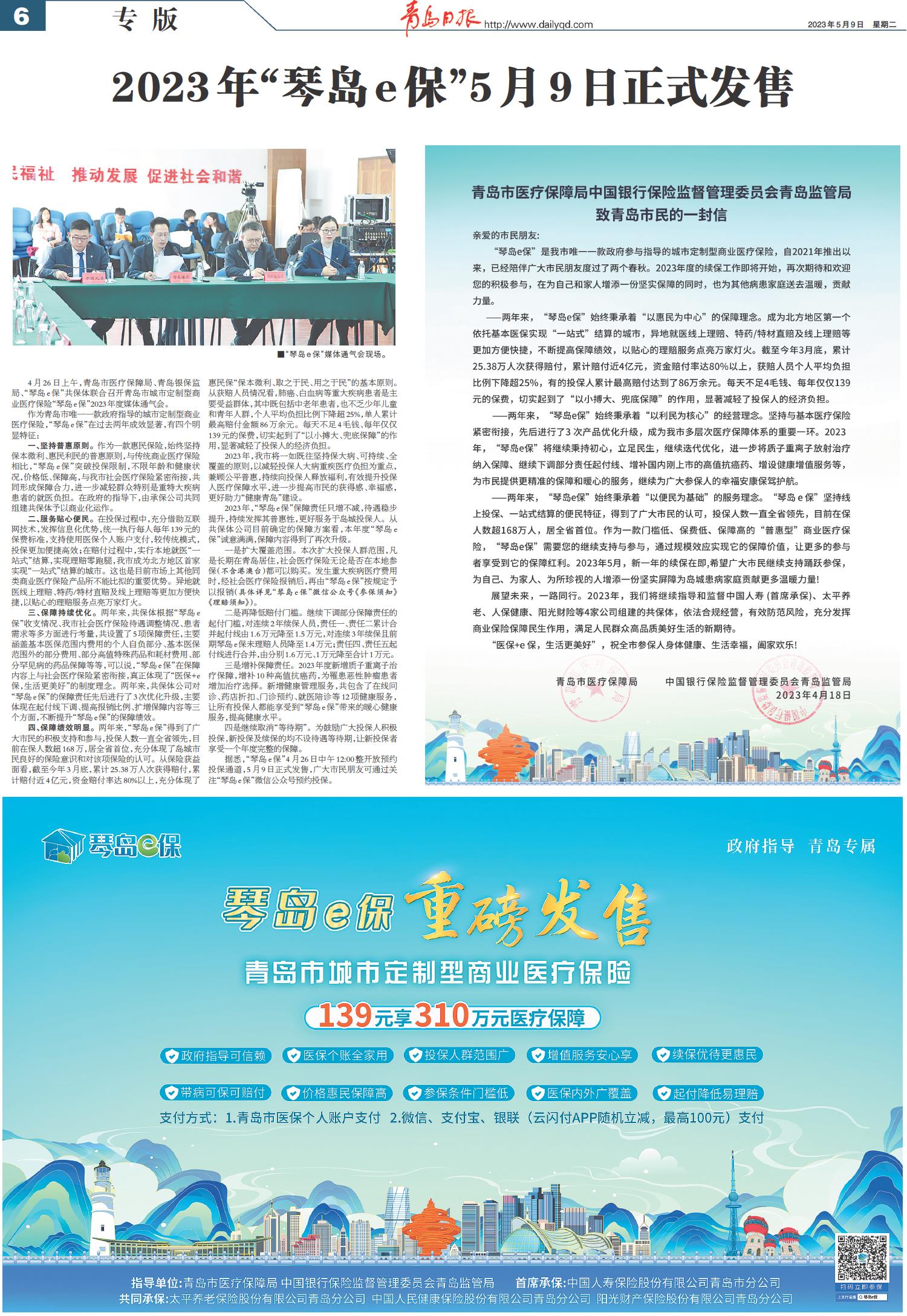 2023年“琴岛e保”5月9日正式发售