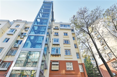 ■市北区部分街道在微更新改造中为老居民楼加装电梯。崔冬妮 摄