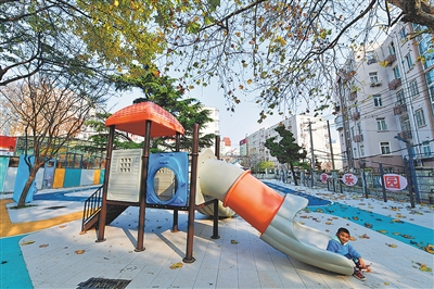 ■敦化路街道的小朋友在微更新项目伊春路康乐园内玩耍。 崔冬妮 摄