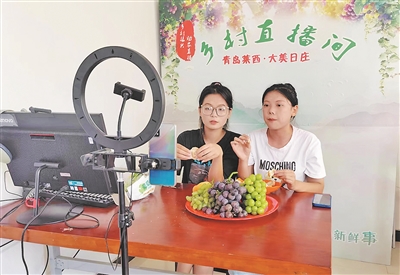 ■电子商务专业学生在助农实践活动中“直播带货”。