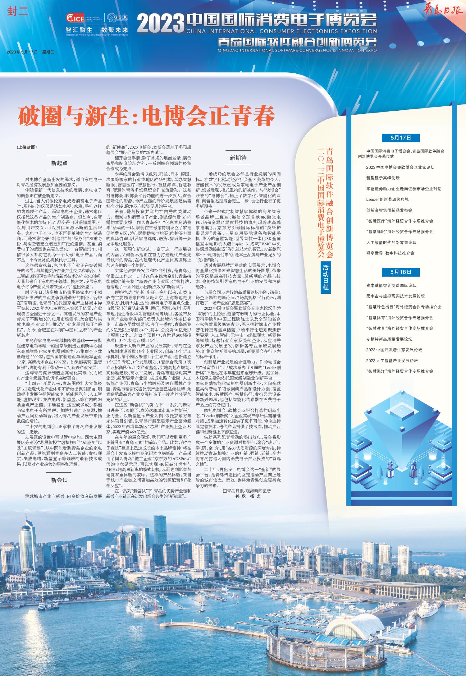 二○二三中国国际消费电子博览会青岛国际软件融合创新博览会活动日程