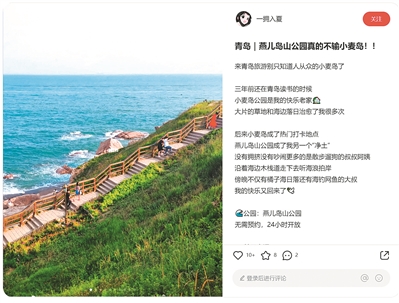 “走进小鱼山公园,仿佛进入一幅油画,这个山头公园虽然不大,但是景观设计巧妙、精致,实在太美了。”在小鱼山公园,一位外地游客这样感慨道。她告诉记者,虽然是第一次到青岛旅游,但打卡地早已计划好,“‘小红书’上有很多攻略,小鱼山公园就是我看了网友们的评价推荐后慕名而来的,这里视野佳、景色美,这一趟太值了!”