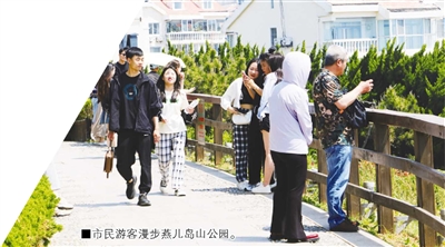 “真的好美,这个公园在抖音、小红书很火爆的。”“那边的木栈道拍照特别棒,夜景也不错。”“在这边观日落绝对没错。”……刚走进燕儿岛山公园,就听到不少游客在议论。