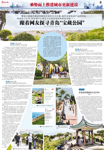 当下,除了太平山中央公园、浮山森林公园两大“绿肺”,在已完成整治提升的60个山头公园中,青岛还有不少家门口的“宝藏公园”,或许你还不曾走近它们,但这些公园在线上已是现象级的存在。网友在青岛这些迷人公园留下了自己的“足迹”,通过“小红书”“抖音”“微博”等社交平台分享着游园的快乐,并提供了不少游园攻略。