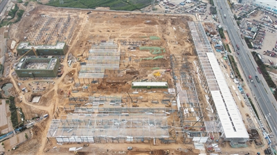 ■潍柴(青岛)智慧重工智造中心项目二期正全力冲刺6月钢结构主体结构全面封顶的工期目标。