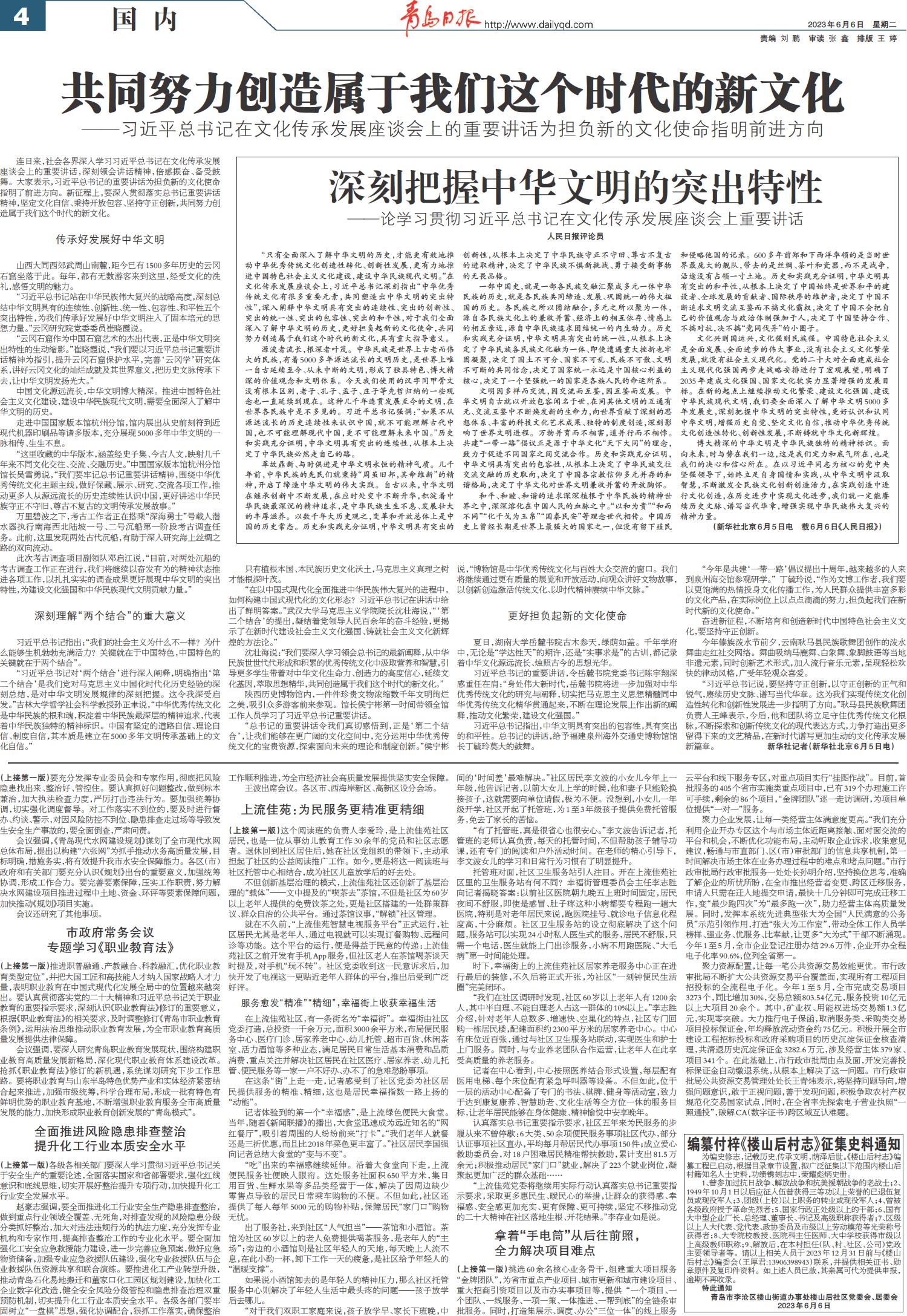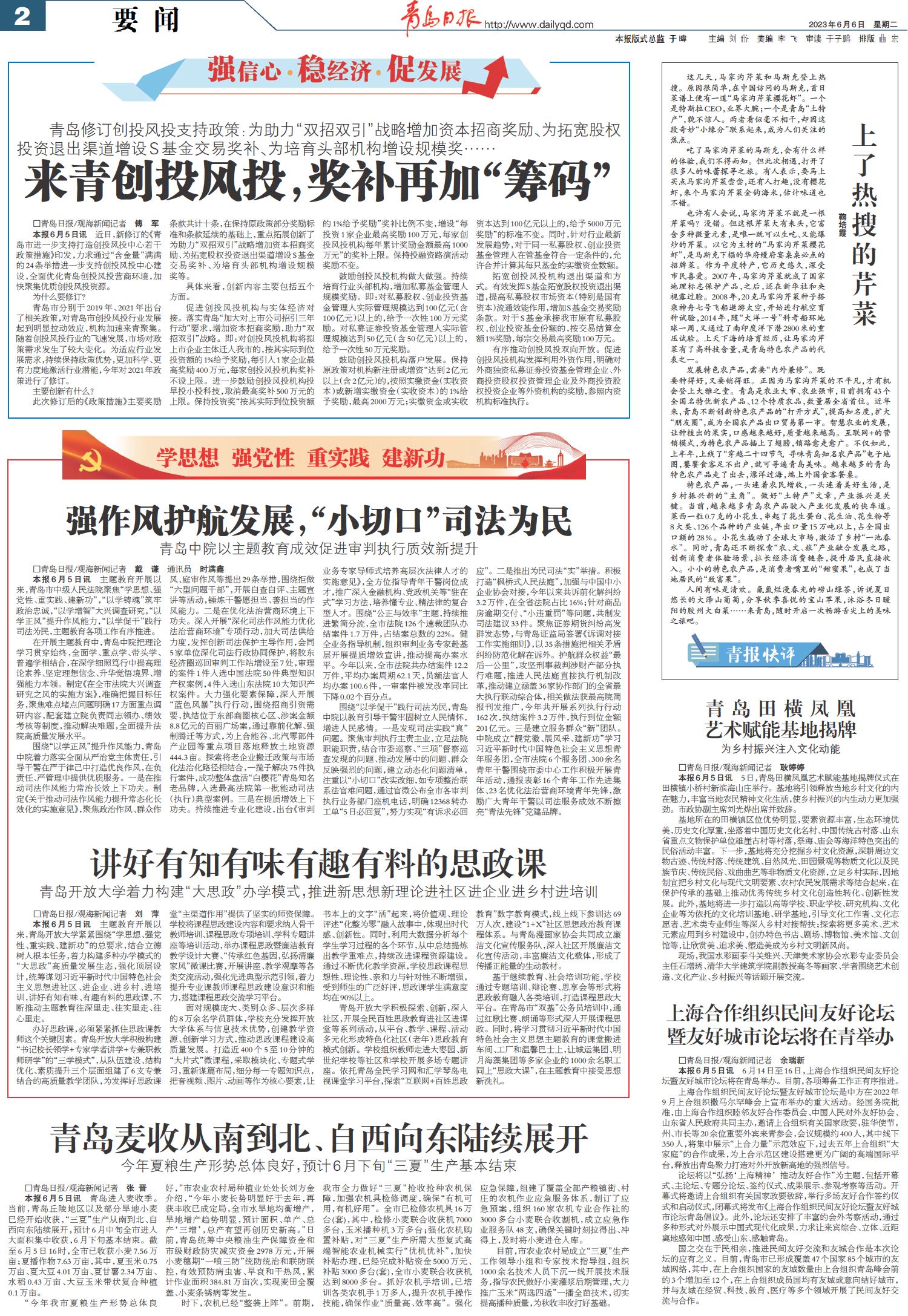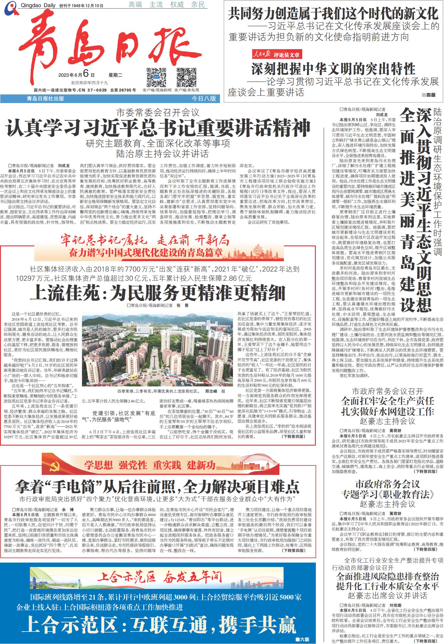01 首版 02 要闻 03 青岛日报聚焦 04 国内 05 城事·专题 06 专版 07 青报影像 08 健康