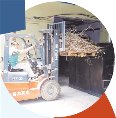■经过分拣粉碎环节,家具里的木头变成适宜处理的木料。