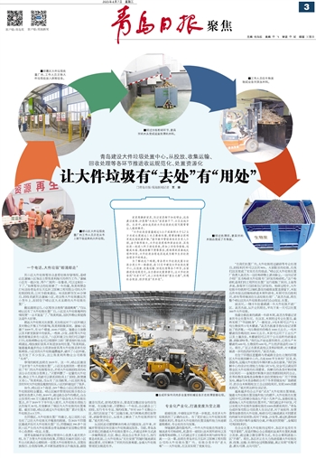 为了解决这个难题,青岛将大件垃圾处置与垃圾分类工作一体推进,在10区市建设大件垃圾处置中心,从投放、收集运输、回收处理等各个环节,全面推进收运规范化,全力推动处置资源化,让大件垃圾告别“无家可归”,走上回收利用的“重生之路”,实现社会效益、经济效益“双丰收”。