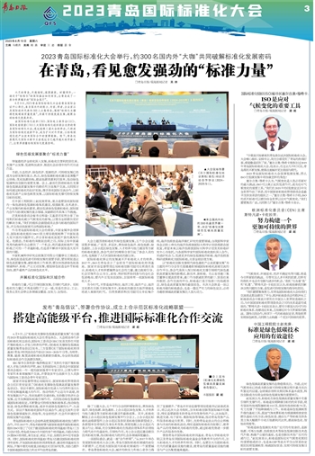 一场国际盛会,就是一座“合作桥梁”。“从2017年举办首届国际标准化大会以来,青岛在国际标准化领域的地位不断提升,已经成为国际国内标准化领域的一个重要城市。青岛借助标准化大会,城市的软实力和核心竞争力得到了显著提升。”青岛市市场监督管理局党组书记高善武表示,将以此次大会为契机,加快标准创新型国际城市的建设,特别是要鼓励支持青岛市的优势传统产业,比如海洋、轨道交通、电子家电、橡胶轮胎等领域,推动青岛优势产品和服务标准走向世界。同时,支持青岛走出去的企业积极参与当地的标准化活动,特别是国际标准化的制修订,使青岛产品的优势转化为标准的优势,通过标准优势进一步提升产品和服务的优势。