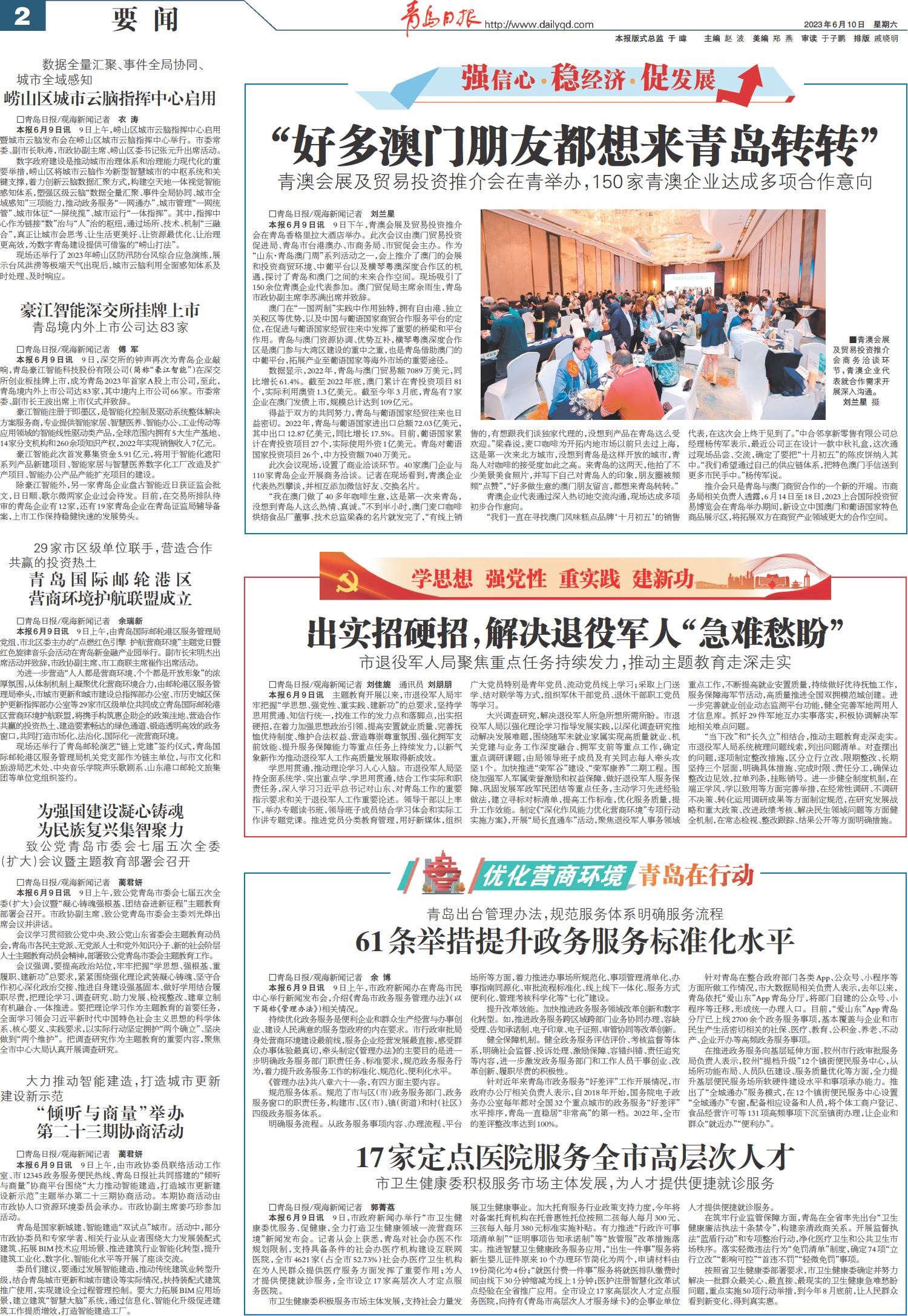 01 首版 02 要闻 03 专版 04 要闻 05 要闻 06 工赋青岛 07 会展 08 法治