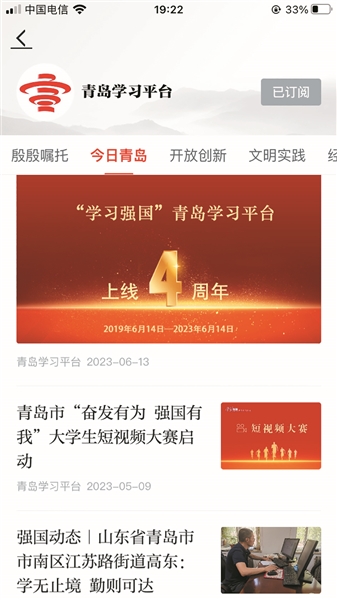 ■“学习强国”青岛学习平台成为城市对外宣传的重要平台。