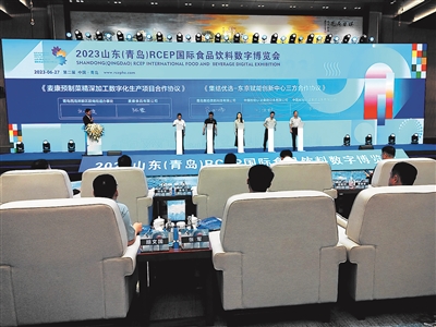 ■6月27日,2023山东(青岛)RCEP国际食品饮料数字博览会在青岛国际会议中心开幕。一批合作项目在会上签约。