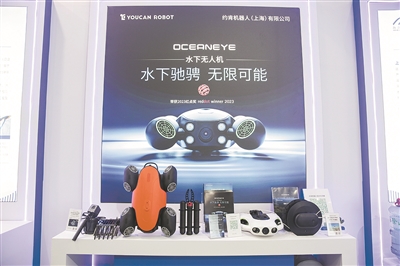 无人机能在天上飞,这并不稀奇,但你见过能在水里游的无人机吗?本次海博会上,约肯机器人(上海)有限公司就带来了两款水下无人机。企业销售主管王琴介绍:“我们的消费级产品是全球首款变焦拍摄水下无人机,可用于水产养殖、潜点探测、水下勘察等,画面实时传输。比如海参养殖,可以利用它实现随时监测,取代潜水员工作。工业级产品则是全球首款轻工业级3D全域运动水下无人机,功能和应用更广泛,可以实现水下全景域视角拍摄,360度全维度自由运动,并能搭载机械臂、声呐、采水器等,实现水下灵活作业。”