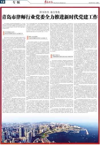 青岛市律师行业党委始终高度重视党建工作,充分发挥律师行业各级党组织的战斗堡垒作用和党员先锋作用,激励党员律师立足平凡岗位,拼搏奉献,锻造过硬的党员队伍,在社会主义法治建设中站排头、当先锋、作表率,争做“党和人民满意的好律师”。