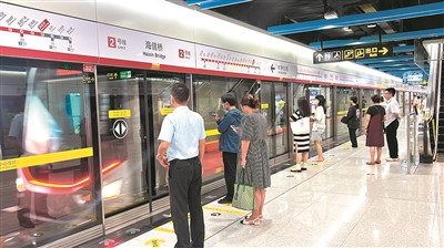 ■6月30日,市民在地铁2号线海信桥站有序乘车。