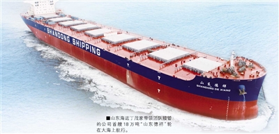 ■山东海运丁茂家带领团队接管的公司首艘18万吨“山东德祥”轮在大海上航行。