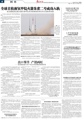 今年以来,政策“组合拳”频出,持续激发消费潜力,助力新能源汽车产业蓬勃发展,上半年我国新能源汽车产销量实现同比稳健增长。产业结构加速升级,车企加快“出海”步伐,电动化消费潜力逐步释放。我国新能源汽车产业正在迈向规模化、全球化的高质量发展新阶段。
