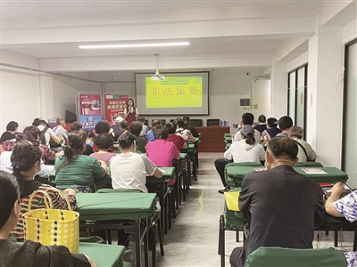 本次活动主讲人,中信银行南京路支行营业经理赵正昊结合参与活动的人群特点,着重介绍了养老领域非法集资及电信网络诈骗的常见表现形式。养老领域非法集资顾名思义是以养老服务为名、针对老年人的非法集资行为,严重损害老年人合法权益,给老年人造成严重财产损失和精神伤害。四种表现形式分别为:以宣称“以房养老”为名非法集资、以投资“养老项目”为名非法集资、以提供“养老服务”为名非法集资、以销售“养老产品”为名非法集资。赵正昊提醒道,老年朋友们一定要审慎选择投资理财渠道,警惕“高回报、低风险”等诱导宣传,坚决抵制高额诱惑,守住自己的养老钱。参与非法集资不受法律保护、风险自担,要谨慎预付高额养老服务费用,不向个人账户缴纳资金。一旦发现相关违法犯罪活动线索,及时向公安机关、金融部门举报。介绍完养老领域非法集资常见表现形式,赵正昊又使用以案说险,向居民介绍了电信网络诈骗的常见手段,并总结了“一看、二问、三查、四不要”的防金融诈骗口诀。