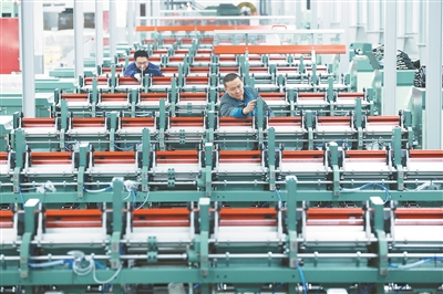■即发集团龙山工业园数字化纺纱智能工厂安装调试生产设备。