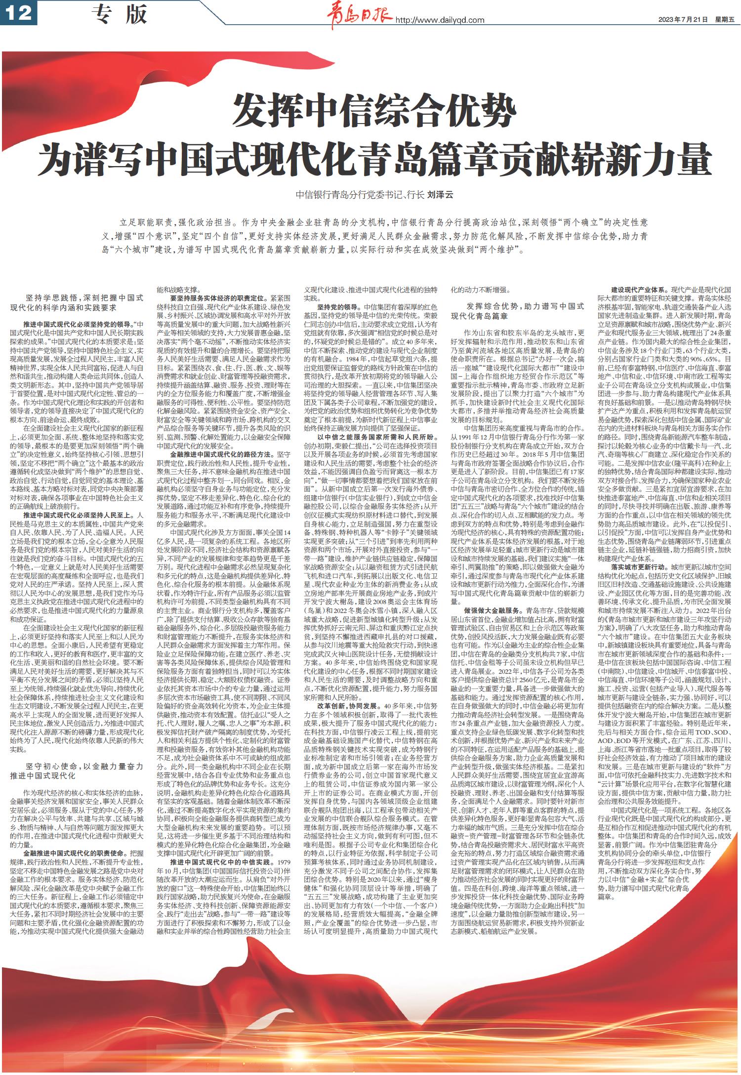 发挥中信综合优势 为谱写中国式现代化青岛篇章贡献崭新力量