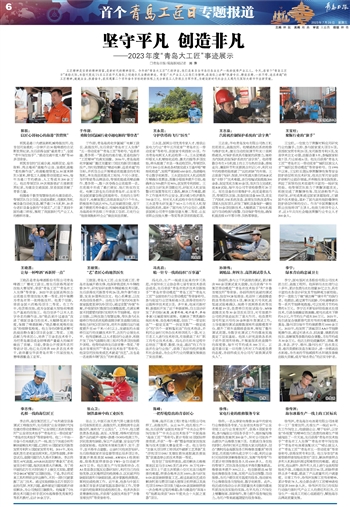 工匠精神是宝贵的精神财富,是新时代的精神指引。今年的“青岛大工匠”已经评出,他们是来自全市各行各业生产一线的优秀产业工人。今天,在首个“青岛工匠日”来临之际,本报刊发这15名工匠在平凡岗位上创造非凡业绩的事迹。希望广大产业工人以他们为榜样,在岗位上诠释“执着专注、精益求精、一丝不苟、追求卓越”的工匠精神,兢兢业业、执着奋斗,在实现第二个百年奋斗目标的新征程上充分彰显工人阶级主力军作用,为建设新时代社会主义现代化国际大都市作出新贡献。