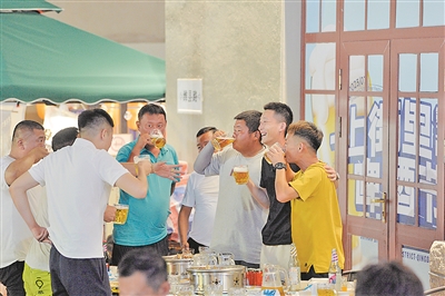 ■市民游客在上街里啤酒节上开怀畅饮。于 滈 摄
