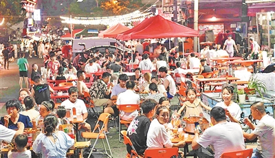 ■营口路周边的啤酒大排档吸引了众多市民游客。 赵健鹏 摄