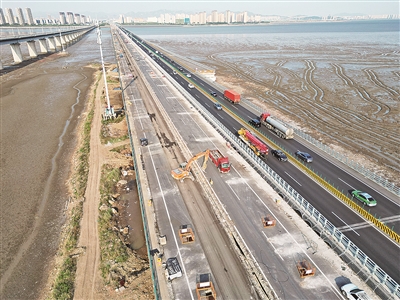 建设中的青兰高速双埠至河套段改扩建工程更是捷报频传。2022年12月底,青兰高速双埠至河套段改扩建工程仅用一年时间完成了项目主线新建左幅施工建设任务,提前半年时间实现完工调流通车。今年以来,双埠至河套段改扩建工程已转入右幅改建施工阶段。截至上半年,桥梁下部结构已基本结束,上部结构、桥面系已全部展开,路基、桥梁工程已完成总计划的75%以上,项目总体进度超前。“当前,我们正向9月底完成右幅改建并调流转序的目标发起冲刺,确保今年年底主线实现双向八车道通车。”青岛交通发展集团建投公司副总经理王健介绍,项目通车后将与新机场高速一期、新机场高速连接线、环湾大道、潍青高速等道路实现高效衔接,大大提升胶东国际机场与主城区之间及周边路网交通疏解能级。