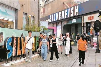 漫步斑驳石板路、感受传统里院建筑、闲逛时尚潮牌店铺、打卡网红艺术装置……随着历史城区保护更新纵深推进,百年银鱼巷经过不断改造与打磨,实现了华丽的蝶变。如今,每过一段时间,银鱼巷都会更新沿街装饰、上新艺术装置,营造不同主题氛围。历史的印记、时尚的气息、多元的业态在这里巧妙融合,吸引许多市民、游客前来打卡。 于滈 摄影报道