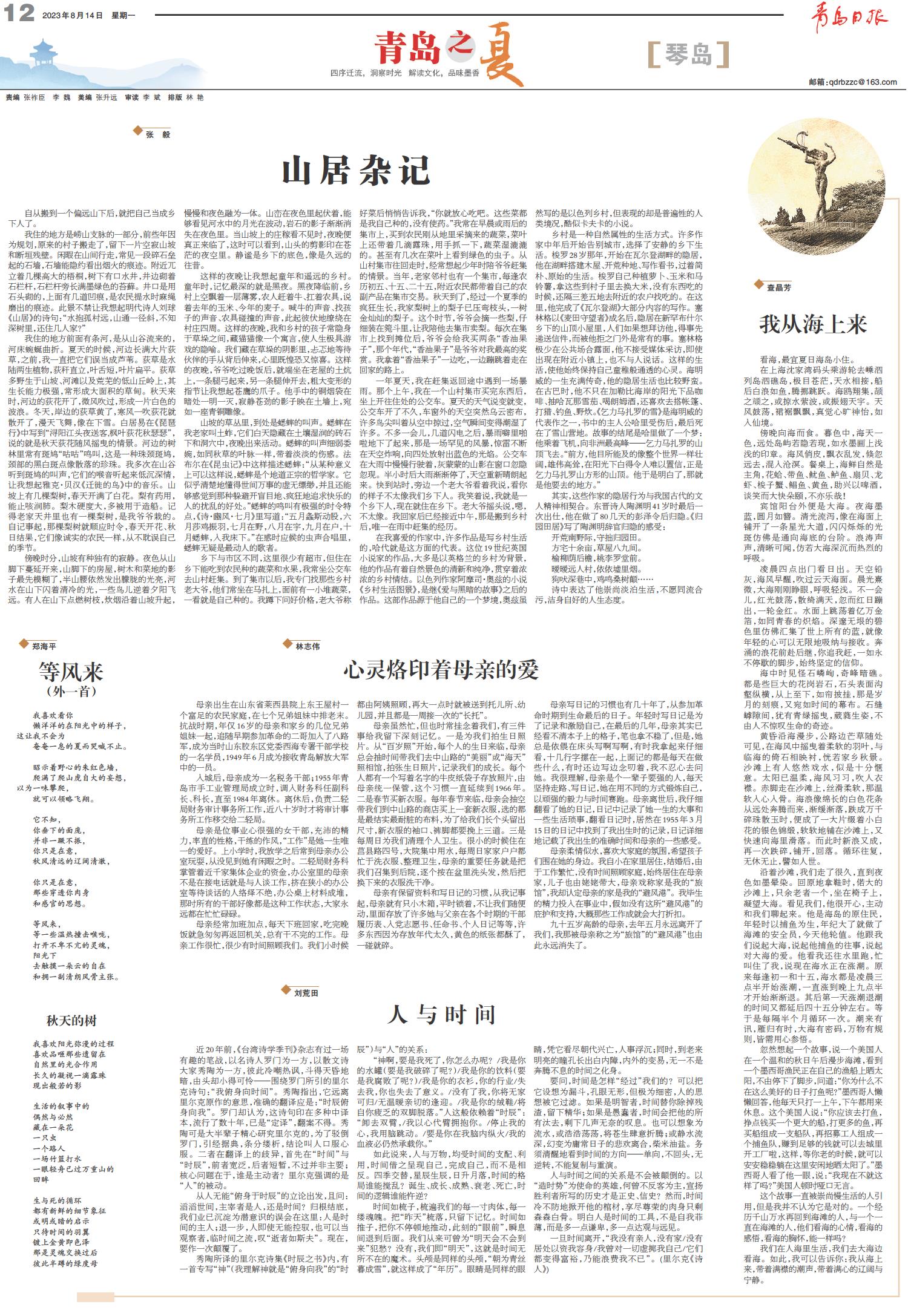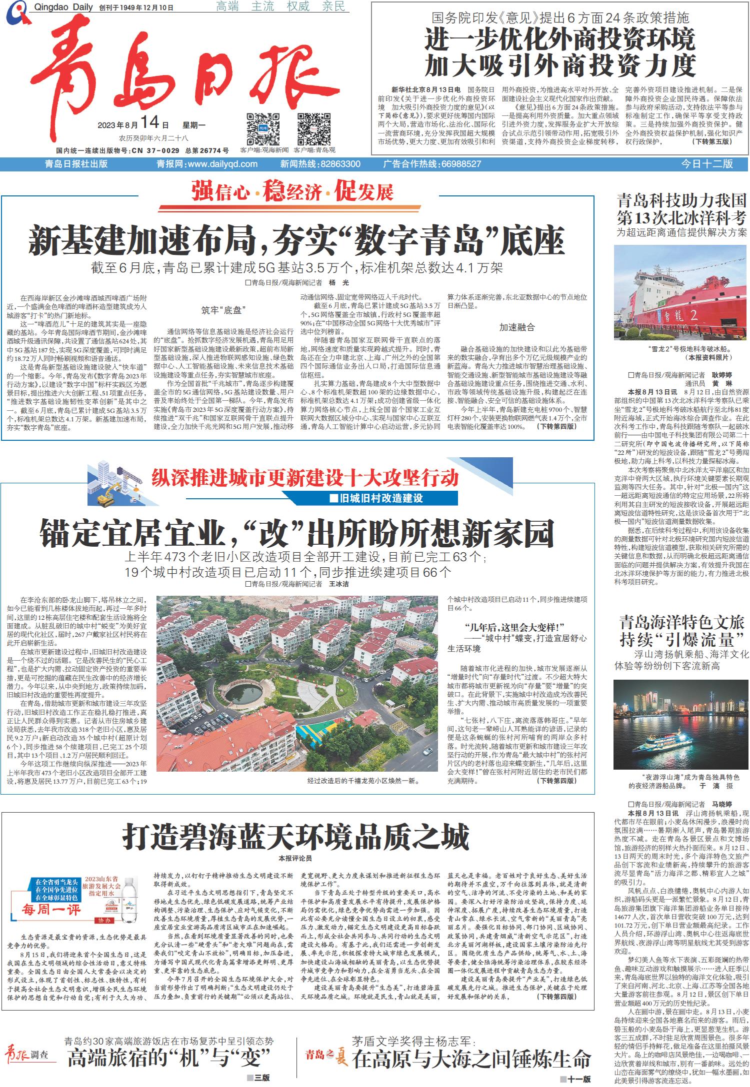 01 首版 02 要闻 03 青报调查 04 国内 05 城事 06 未来教育 07 未来教育 08 青报公益 09 青岛之夏 10 青岛之夏·城市艺术 11 青岛之夏·青报读书周刊 12 青岛之夏·琴岛