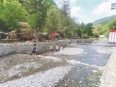 这便是“绿水青山就是金山银山”的最好实例——2021年,青岛挂职干部实地调研时看到,这个村庄位于官鹅沟大景区鹅嫚沟内,适合依托景区发展乡村旅游。但当时村庄环境脏乱差,基础设施更是欠缺,于是便投入东西部协作资金1500万元,为村庄硬化道路、修整河堤、布设景观。在挂职干部与当地政府共同努力下,把村庄打造成了环境优美、森林茂密、鸟语花香之地。环境的改变,让这里成了远近闻名的网红打卡地,为村民和村集体带来了“真金白银”。