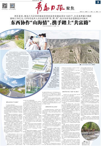 两年多来,青岛为定西、陇南安排财政资金援助项目1423个,社会各界累计捐款捐物2.79亿元,1379名技术人员走进甘肃“传、帮、带”,累计培训甘肃脱贫人口12186人次,帮助脱贫人口到山东(青岛)就业7739人次,帮助培训乡村振兴干部18059人次、专业技术人才37853人次。