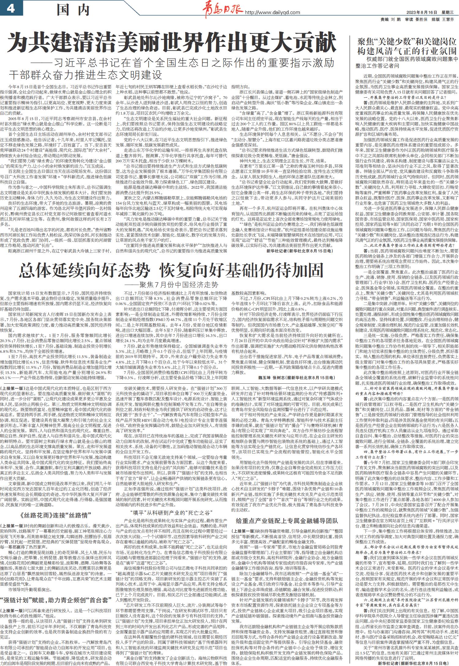 01 首版 02 要闻 03 青报调查 04 国内 05 城事·专题 06 文旅·体坛 07 健康 08 楼市