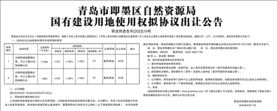 青岛市即墨区自然资源局国有建设用地使用权拟协议出让公告