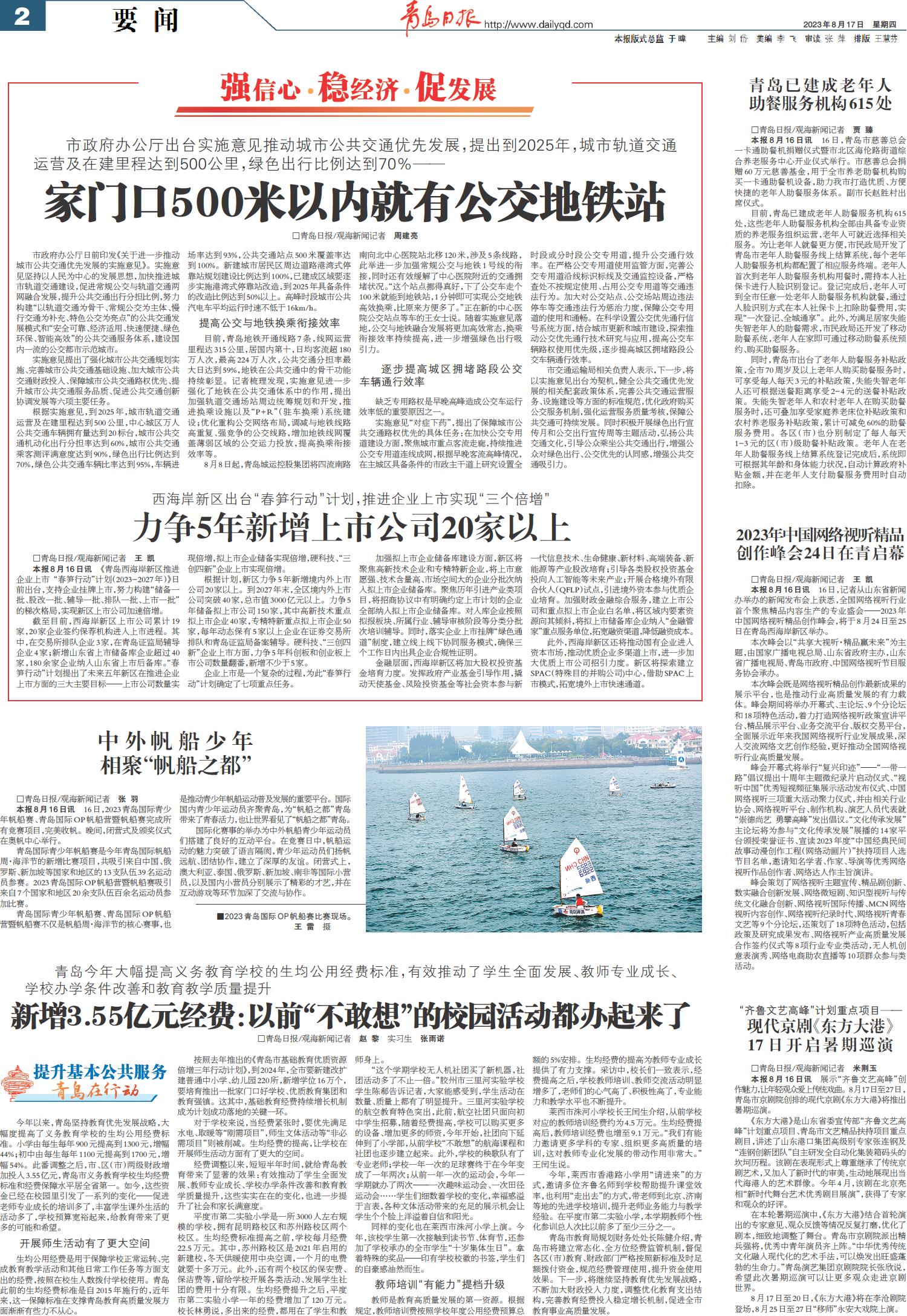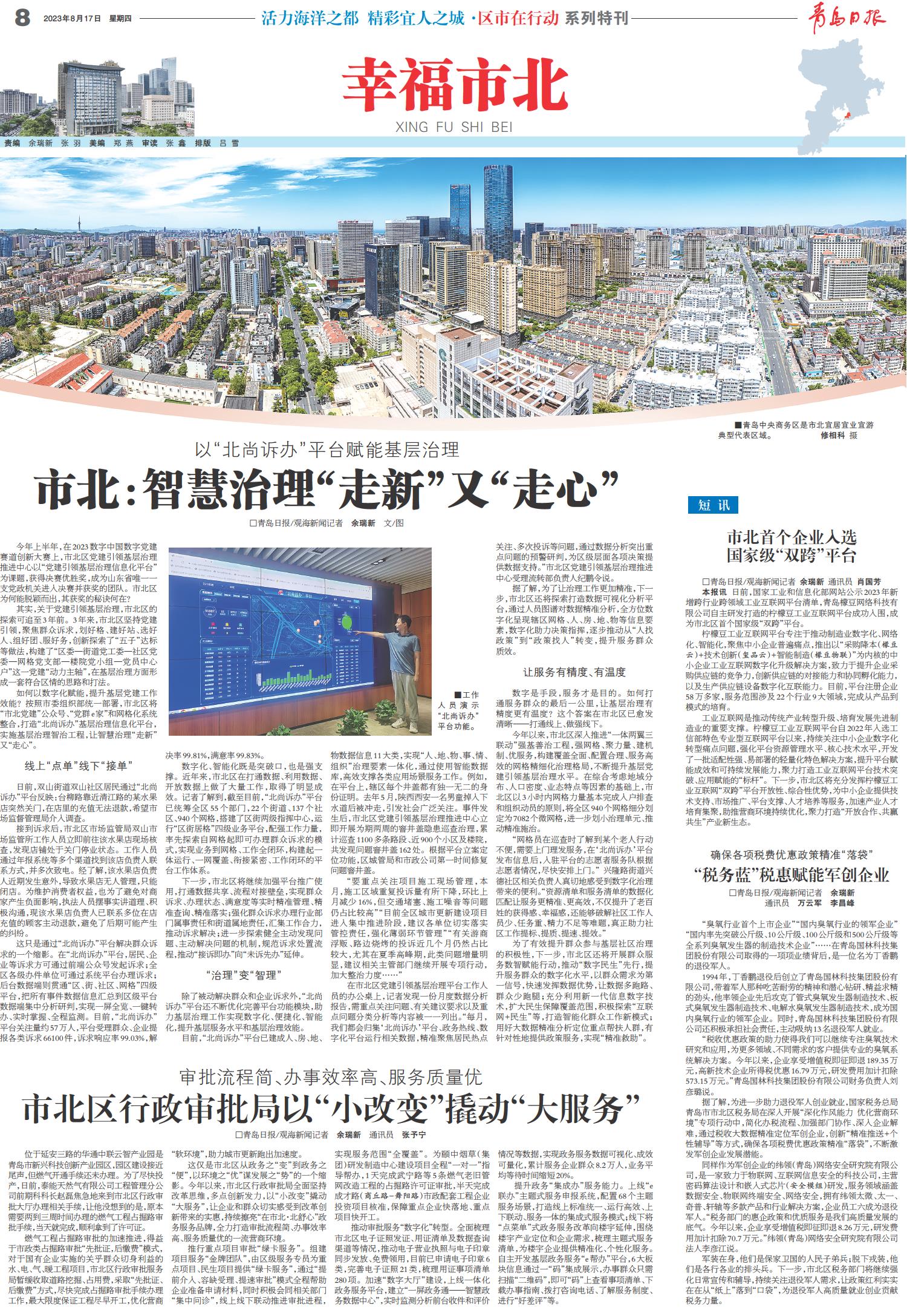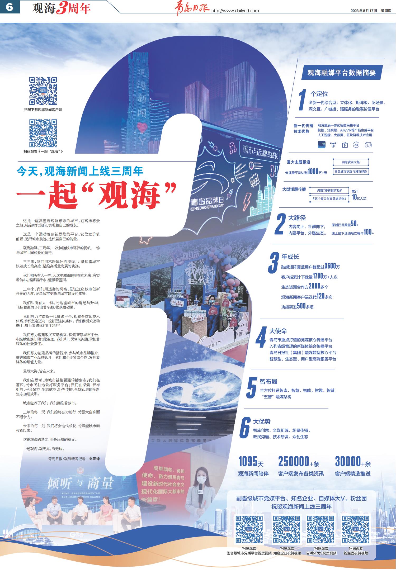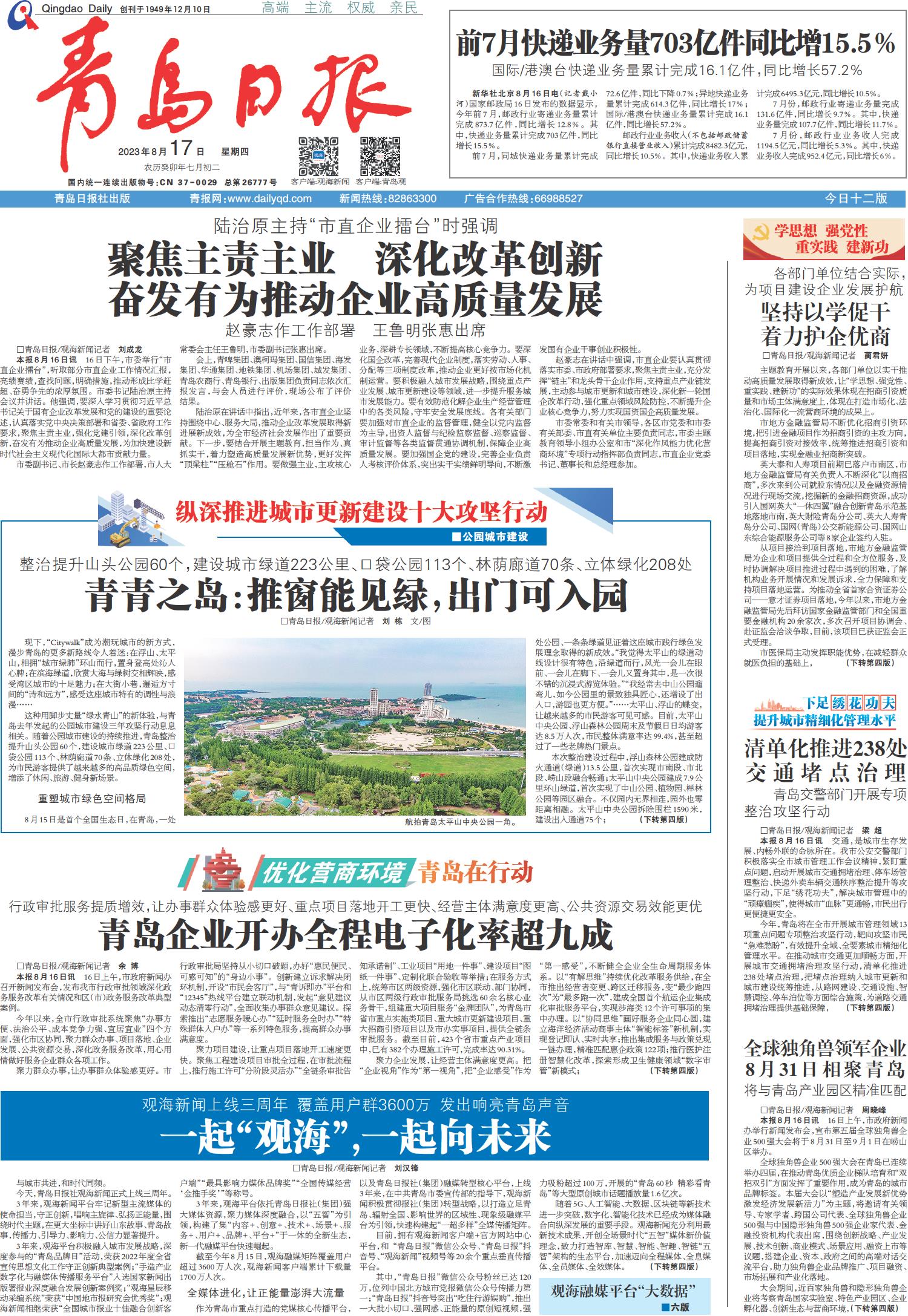 01 首版 02 要闻 03 青岛日报聚焦 04 国内·国际 05 城事 06 观海3周年 07 新财富 08 幸福市北 09 幸福市北 10 上合之声 11 会展 12 公告