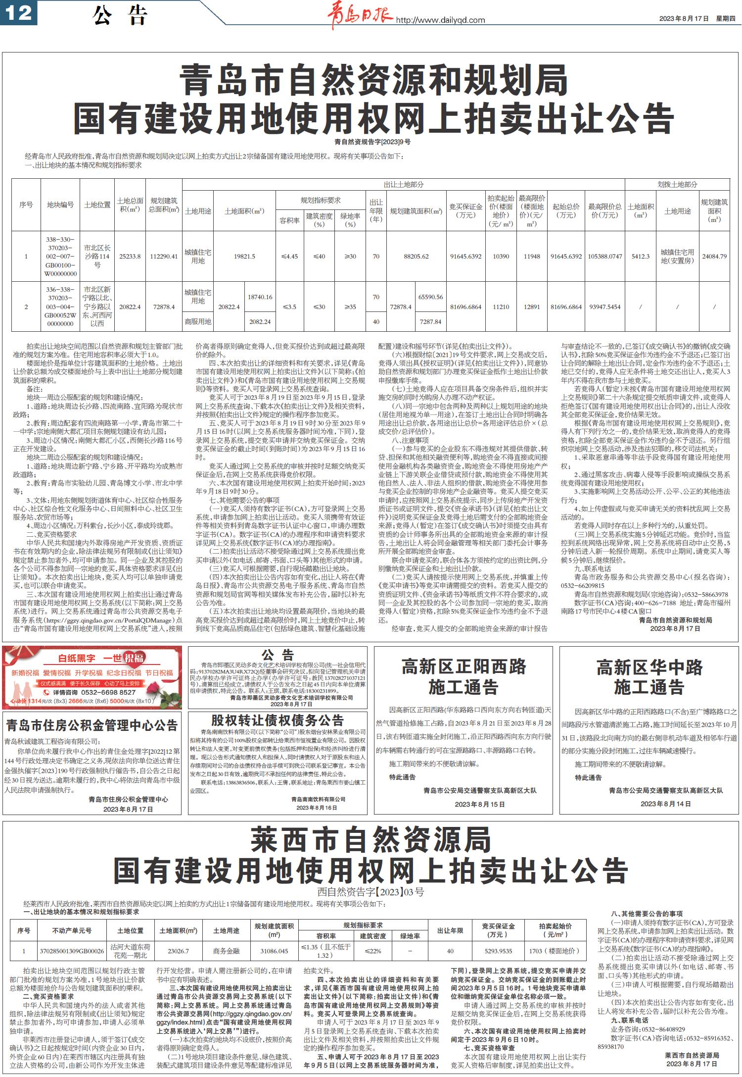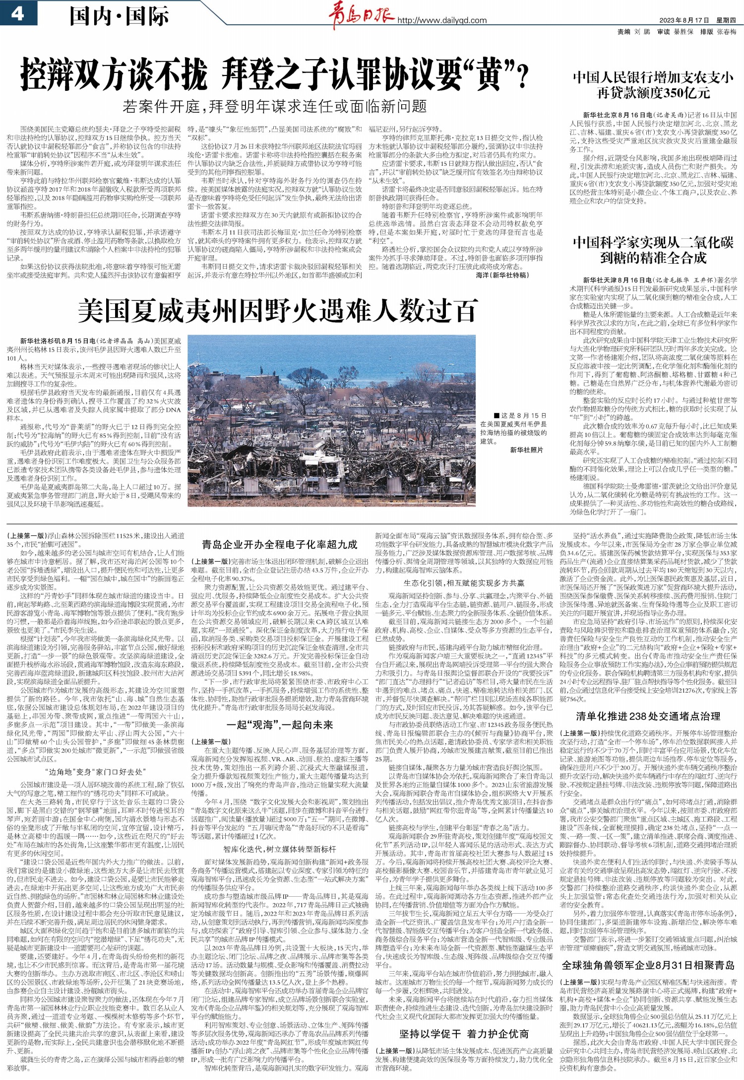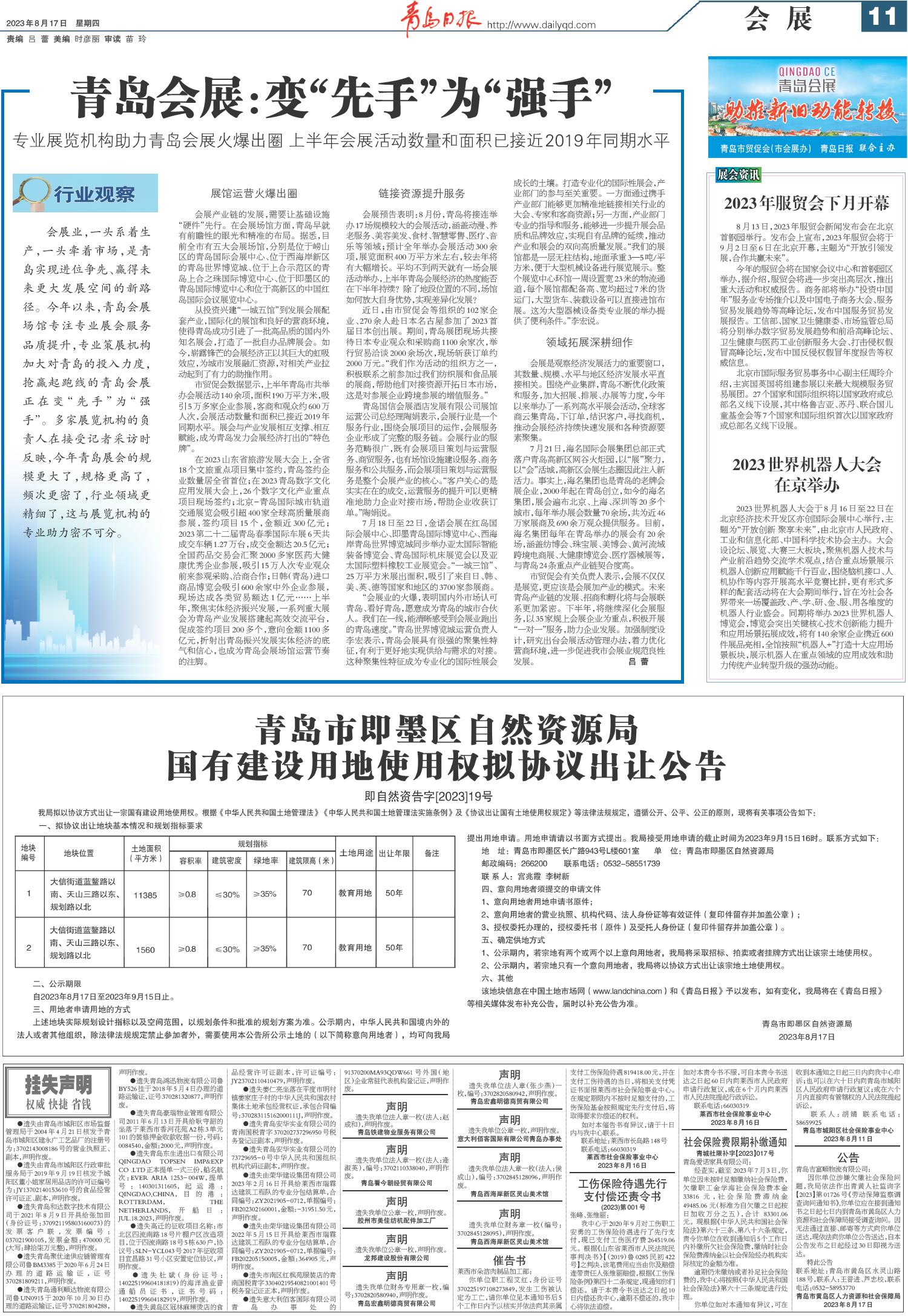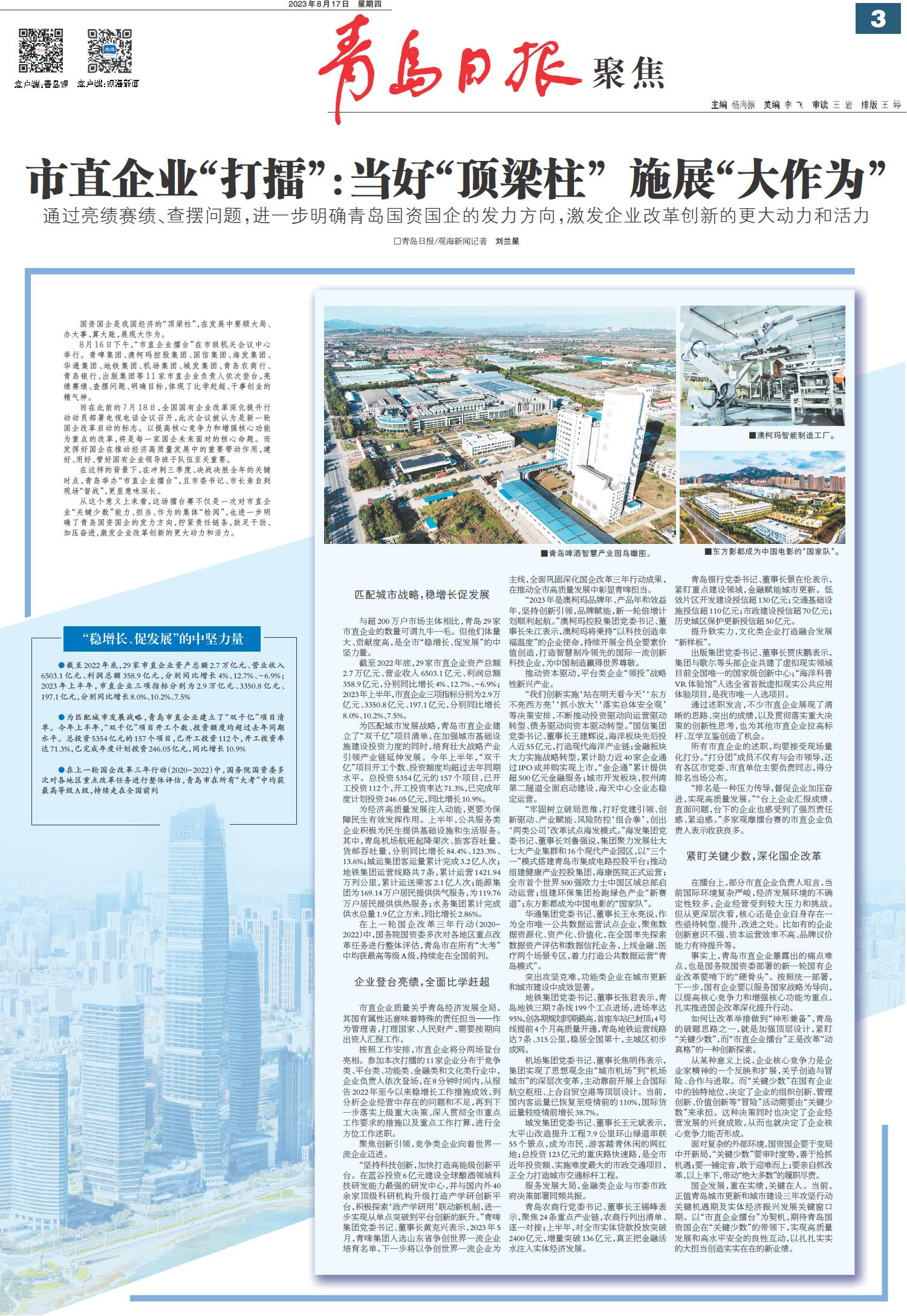 01 首版 02 要闻 03 青岛日报聚焦 04 国内·国际 05 城事 06 观海3周年 07 新财富 08 幸福市北 09 幸福市北 10 上合之声 11 会展 12 公告
