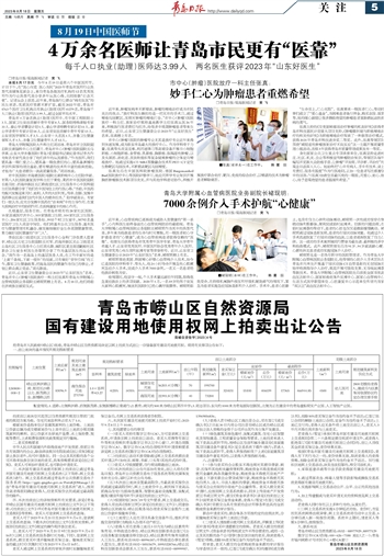 本报8月17日讯 今年8月19日是第六个中国医师节。17日下午,在“医心向党 医心为民”2023年青岛市医师行业典型代表媒体见面会上,来自青岛各级医疗机构的12名优秀医师作为行业典型代表分享多年从医心得,共同致敬“白衣天使”。记者从会上获悉,近年来,青岛践行让群众“病有良医”的民生承诺,优质医疗资源不断扩容,截至2022年底,青岛市8763个医疗卫生机构共有执业(助理)医师41279名,青岛每千人口执业(助理)医师达3.99人,超过全国平均水平。