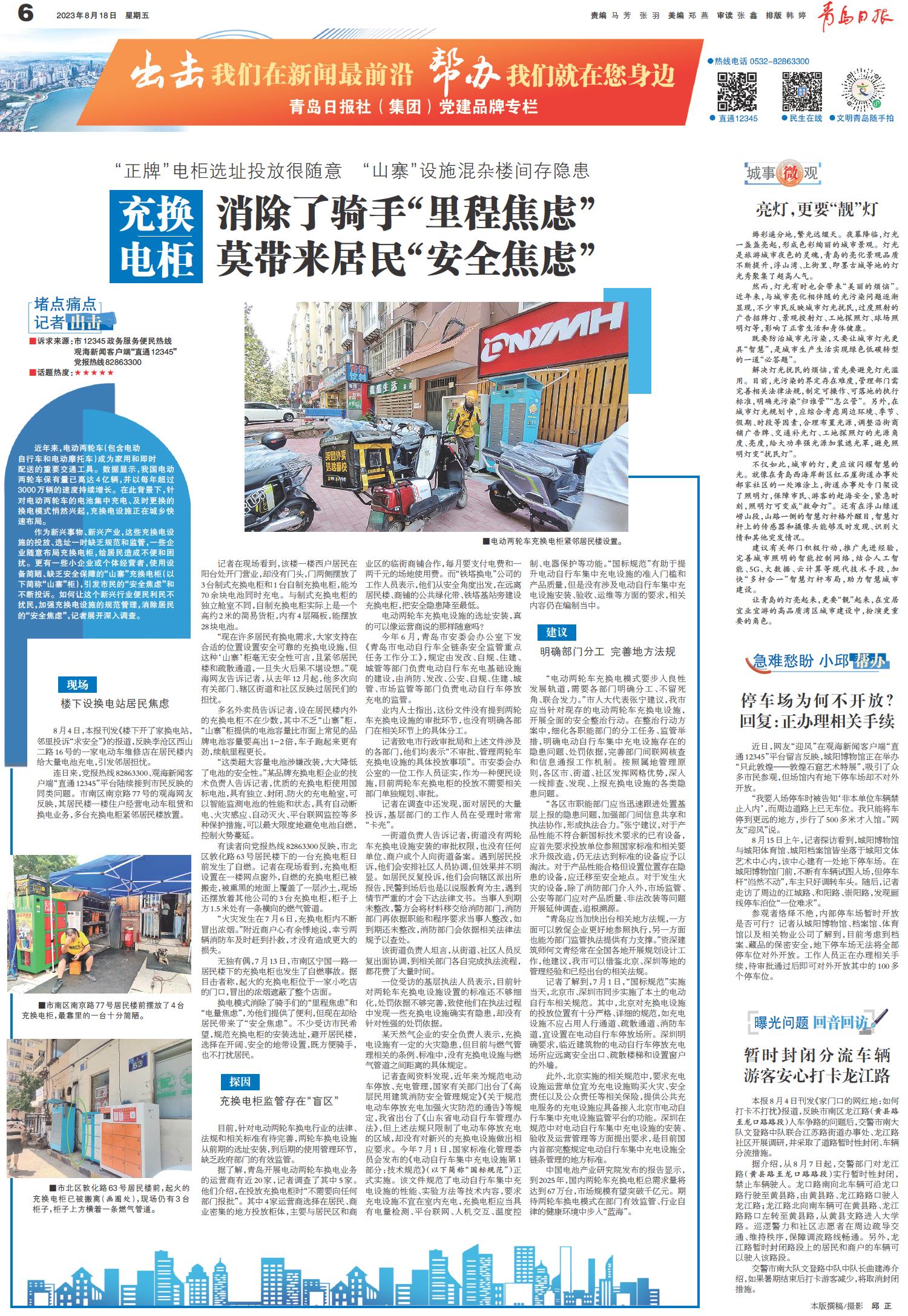 8月4日,本报刊发《楼下开了家换电站,邻里投诉“求安全”》的报道,反映李沧区西山二路16号的一家电动车维修店在居民楼内给大量电池充电,引发邻居担忧。