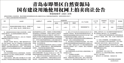 青岛市即墨区自然资源局国有建设用地使用权网上拍卖出让公告