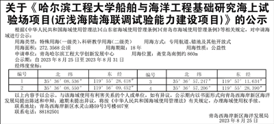 关于《哈尔滨工程大学船舶与海洋工程基础研究海上试验场项目(近浅海陆联调试验能力建设项目)》的公示